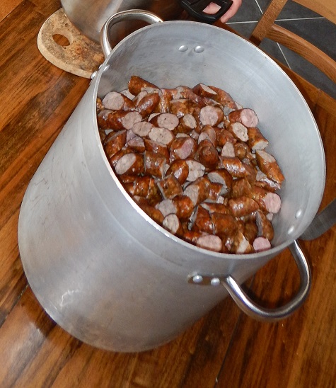d'oignons, de sel, de poivre, de tomates, de saucisses